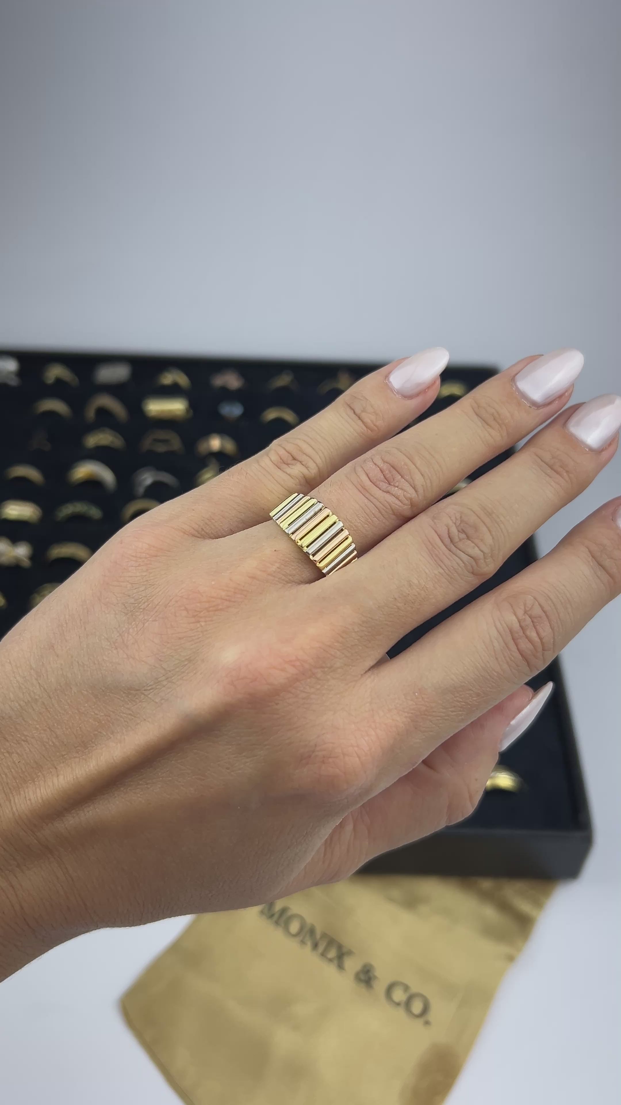 Anel em ouro amarelo, rosê e branco 18k 750 - TAM 18 - 5gr - Peça única sem reposição.